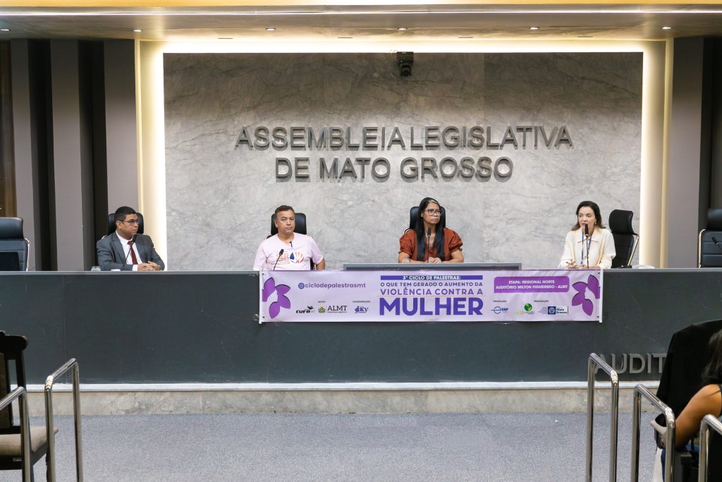 A Assembleia Legislativa de Mato Grosso (ALMT) recebeu, na manhã desta segunda-feira (14), o Terceiro Ciclo de Palestras “O que tem gerado o aumento da violência contra a mulher”. Realizado na sede do Parlamento, o evento tem como objetivo descentralizar o debate e levar informação diretamente à sociedade, não apenas sobre os números da violência, mas também sobre os fatores desencadeadores e as políticas públicas necessárias para transformar essa realidade social.