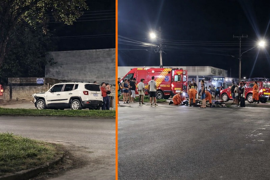 Um acidente de trânsito registrado no final da noite deste sábado (11) mobilizou equipes da Polícia Militar e do Corpo de Bombeiros no cruzamento das avenidas Amazonas e Perimetral Rogério Silva, em Alta Floresta. A colisão, que envolveu um veículo de passeio e uma motocicleta, ocorreu por volta das 23h45, em um trecho de grande movimentação próximo ao “Faculdades Bar”.