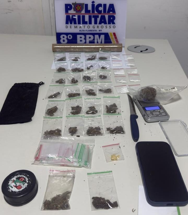 Alta Floresta: operação policial resulta na apreensão de maconha, cocaína e pasta base; dois detidos