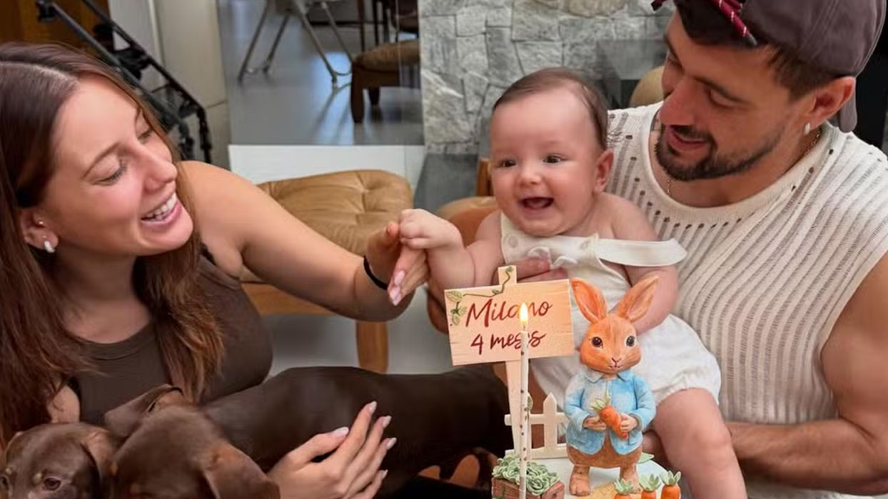 O jogador Giorgian de Arrascaeta, de 31 anos, celebrou nesta quarta-feira (8), os quatro meses de vida de seu primeiro filho, Milano, fruto do casamento com Camila Bastiani, com quem está desde 2023. A comemoração foi compartilhada nas redes sociais com uma sequência de fotos que mostram momentos especiais da família ao longo dos últimos meses.