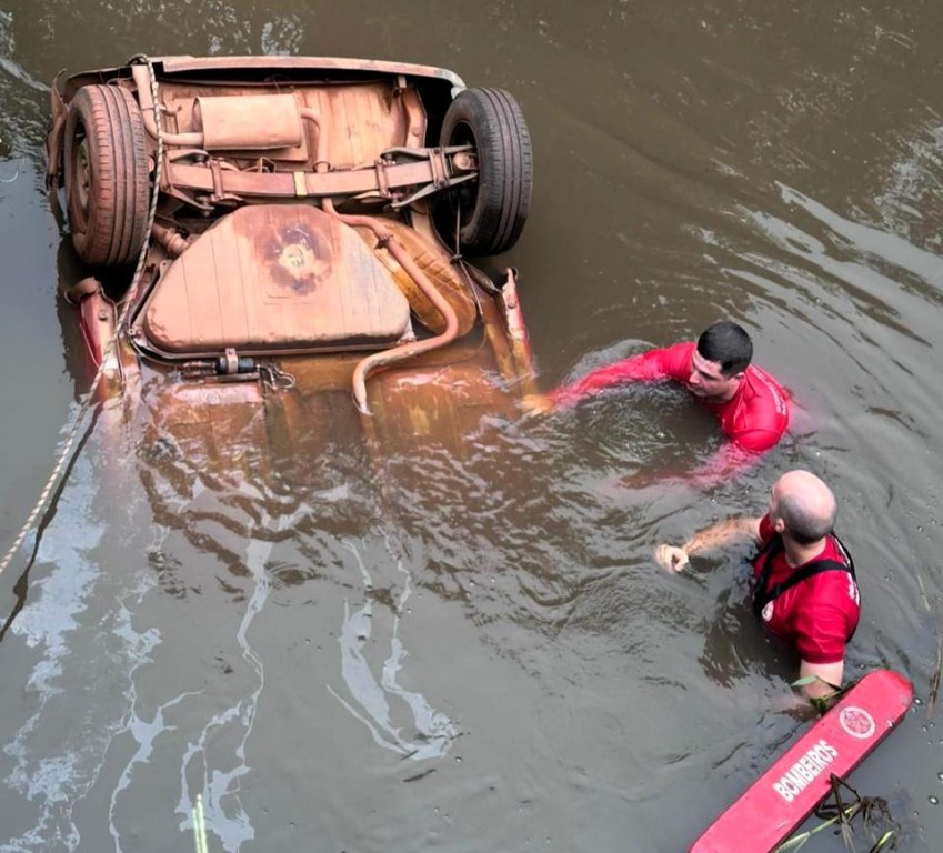 Bombeiros resgatam corpo de homem após veículo cair e ficar submerso em rio