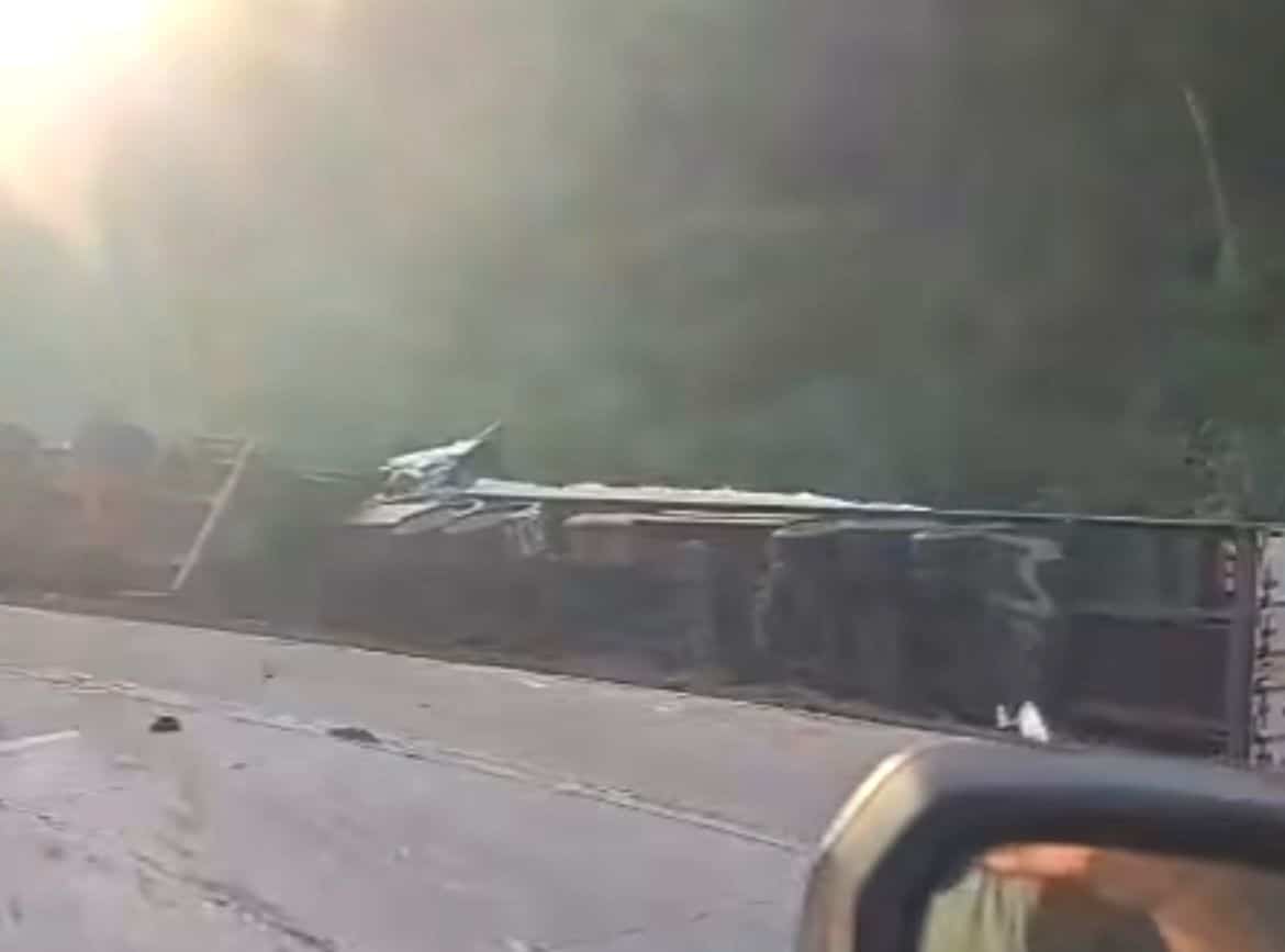 As duas carretas tombaram às margens da pista. O caminhão também parou às margens da rodovia. Não foi informada a dinâmica do acidente.
