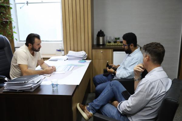 gerente de Operações da Águas de Sorriso, e Eduardo Lana, diretor-presidente da Águas de Sorriso. Junto ao secretário-adjunto de Governo, Cledson de Assis, o vice dialogou sobre a importância do alinhamento entre as equipes técnicas da Águas de Sorriso e da Administração Municipal, principalmente para que, logo após as obras de implantação da rede de esgotamento sanitário, já seja possível à Prefeitura fazer o recapeamento asfáltico daquelas vias.