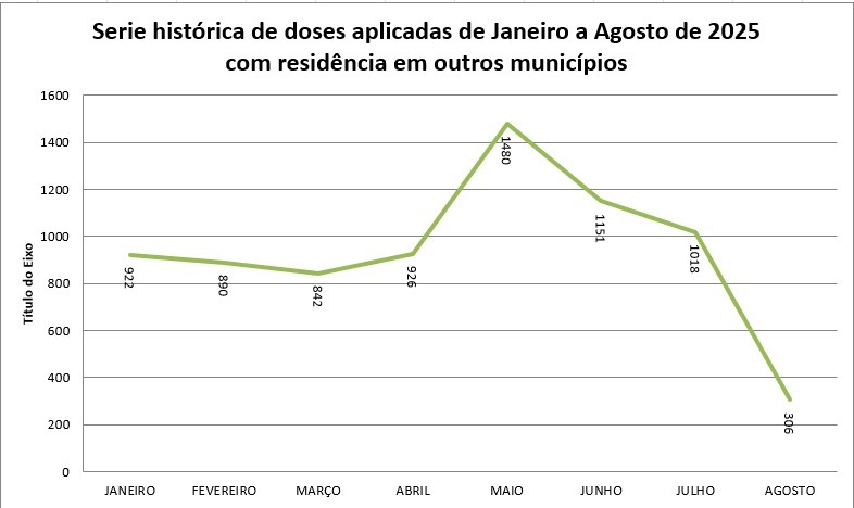 O gráfico elaborado pelo SIPNI – Sistema de Informações do Programa Nacional de Imunizações mostra que em maio ocorreu o maior desvio de registros, com quase 1,5 mil doses contabilizadas fora de Sorriso.