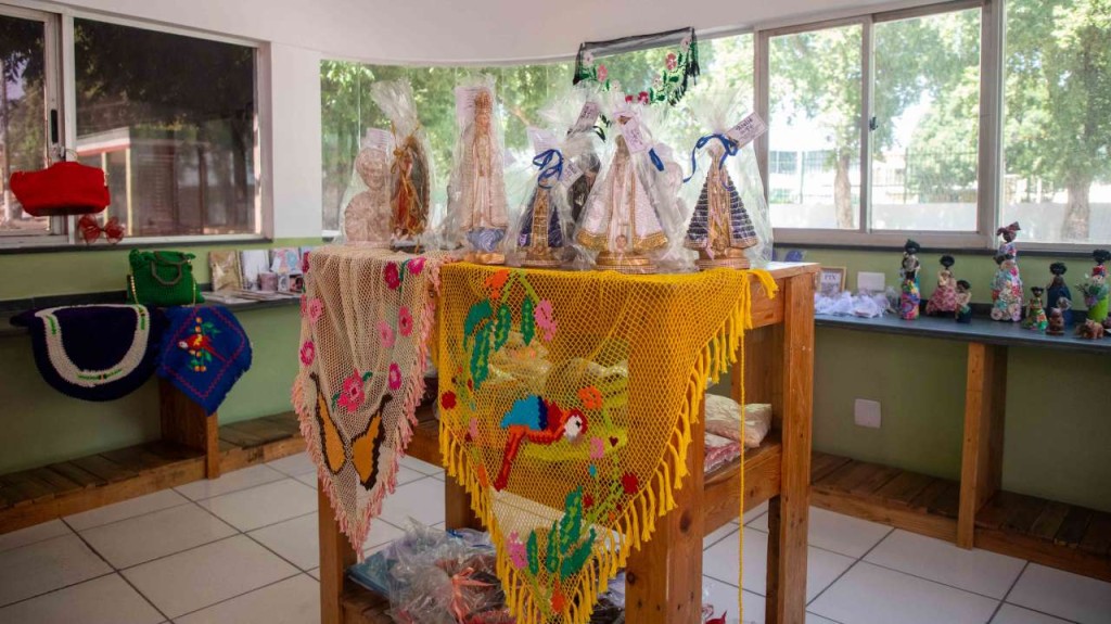 Itens diversos como redes caminho de mesa, chale, bordados para cozinha, ponto cruz, bonecos, artigos infantis, papelaria, peças de arte sacra, canecas, biojóias, além de chinelos e bolsas personalizados, podem ser adquiridos. O Pacinho apresenta a produção de 40 artesãos cadastrados na Superintendência de Cultura de Várzea Grande.