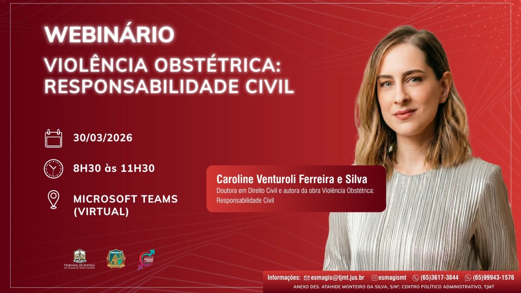 Seguem abertas até a próxima sexta-feira (27 de março) as inscrições para o webinário “Violência Obstétrica: responsabilidade civil”, que será ofertado pela Escola Superior da Magistratura de Mato Grosso (Esmagis‑MT), em parceria com o Comitê de Equidade de Gênero entre Homens e Mulheres do Tribunal de Justiça de Mato Grosso.