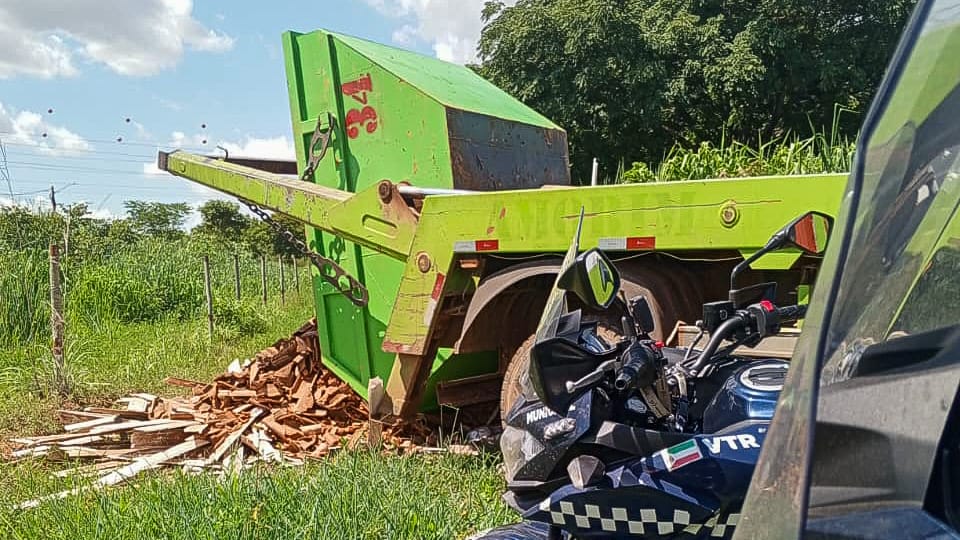 A ocorrência deu início após o caminhão ser identificado e acompanhado pelas câmeras do Centro de Inteligência Municipal de Segurança, onde logo em seguida passou a ser monitorado pela equipe de patrulhamento ambiental da GMVG.