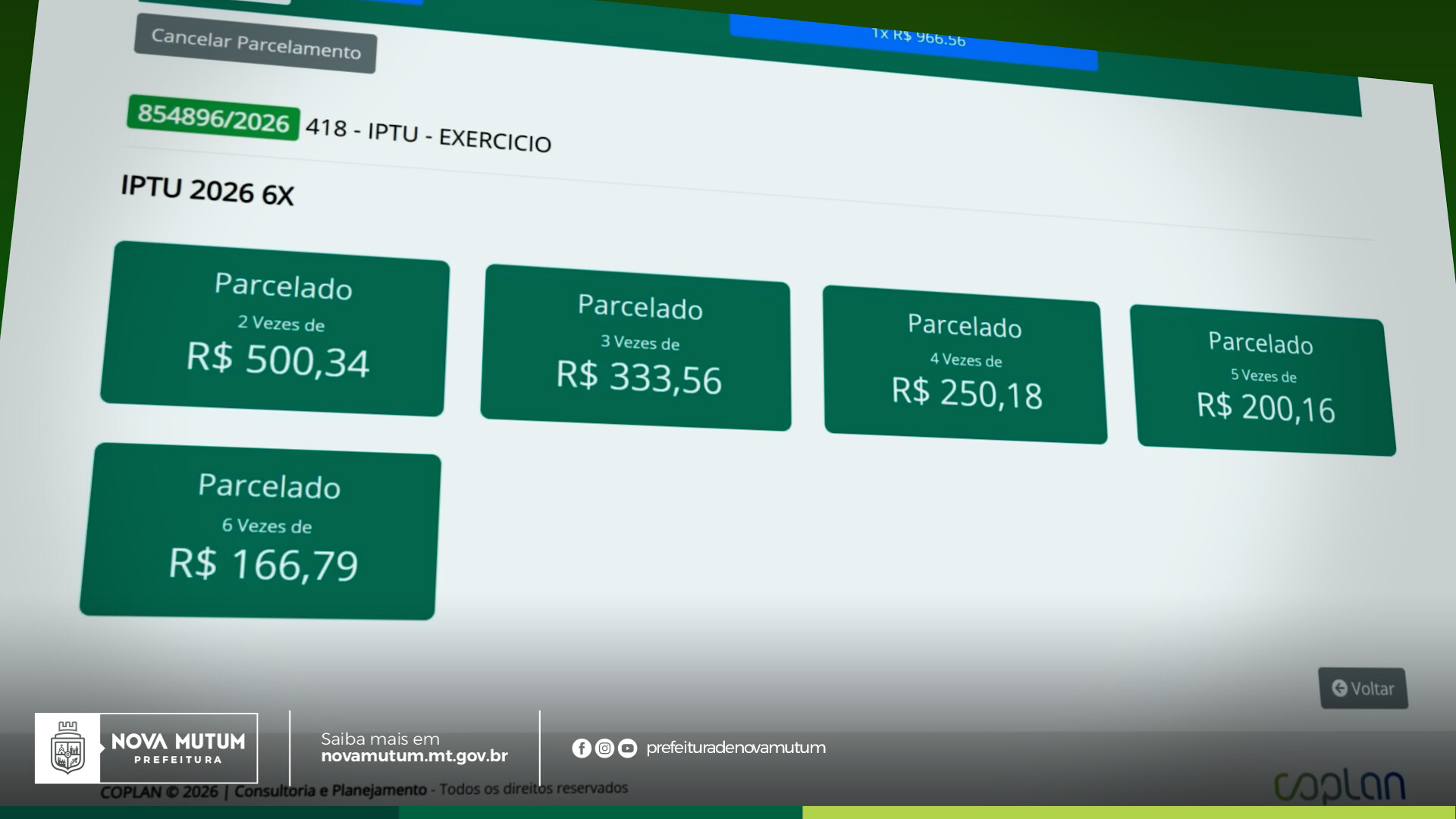 A Prefeitura de Nova Mutum segue com os prazos da campanha de pagamento do Imposto Predial e Territorial Urbano (IPTU) exercício 2026, beneficiando proprietários que ainda não quitaram o tributo, com opções de desconto até 11 de maio, no município de Nova Mutum, para incentivar a regularização fiscal e fomentar investimentos locais. A iniciativa mantém a cota única à vista com abatimento de 15% sobre o valor principal e o parcelamento em até seis vezes com 12% de desconto sobre o montante original, sem acréscimo de juros.