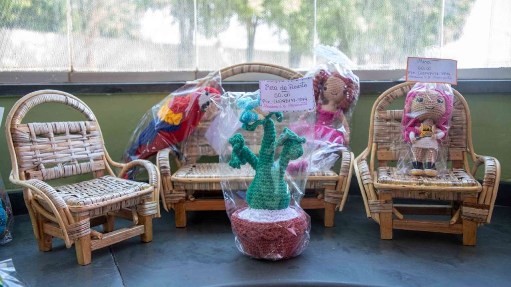 Itens diversos como redes caminho de mesa, chale, bordados para cozinha, ponto cruz, bonecos, artigos infantis, papelaria, peças de arte sacra, canecas, biojóias, além de chinelos e bolsas personalizados, podem ser adquiridos. O Pacinho apresenta a produção de 40 artesãos cadastrados na Superintendência de Cultura de Várzea Grande.