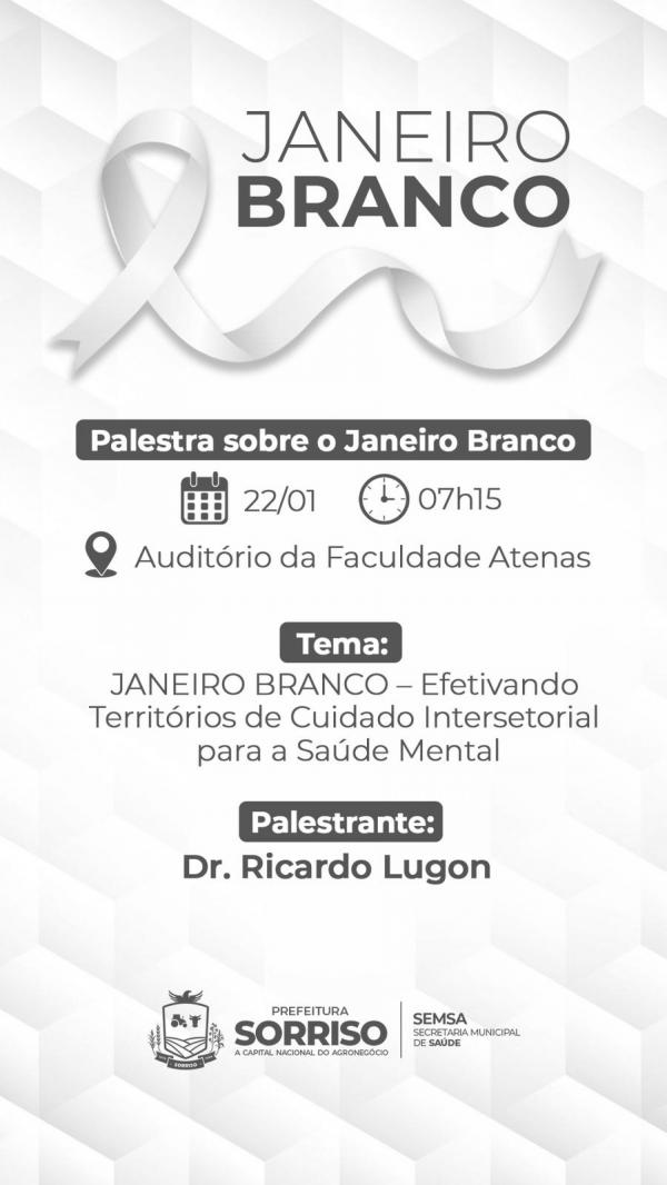 Sorriso promove, no dia 22 de janeiro, a partir das 7h15, no Auditório da Faculdade Atenas, uma palestra especial que integra o movimento nacional do Janeiro Branco. Além de simbolizar recomeços, o mês também convida a um olhar mais atento àquilo que não se vê: a saúde mental.