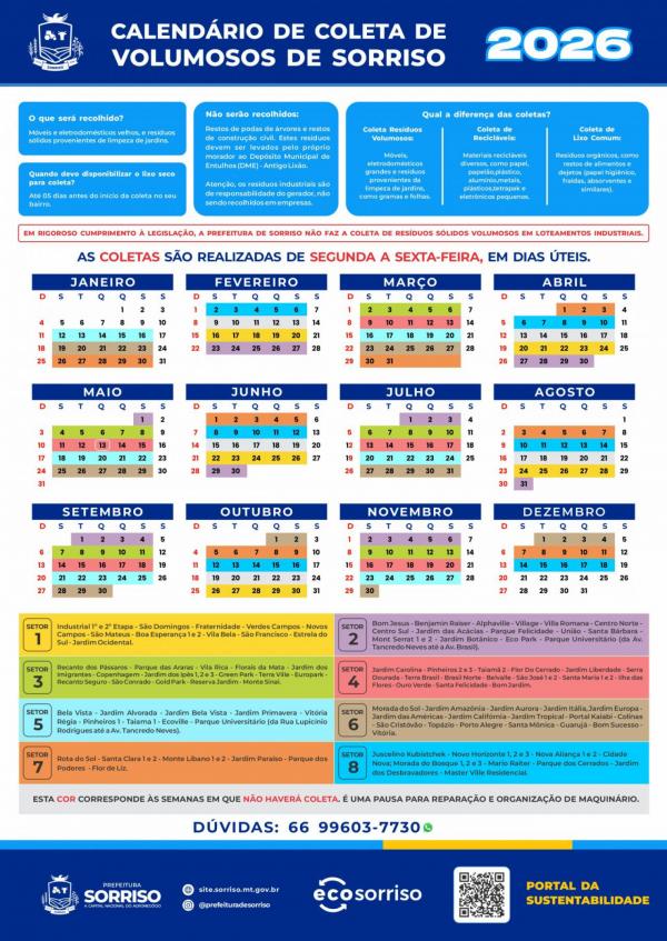 Para seguir reduzindo a geração de resíduos, a Administração Municipal optou por continuar com o calendário de coleta de resíduos volumosos somente na versão digital, disponível no site da Prefeitura.