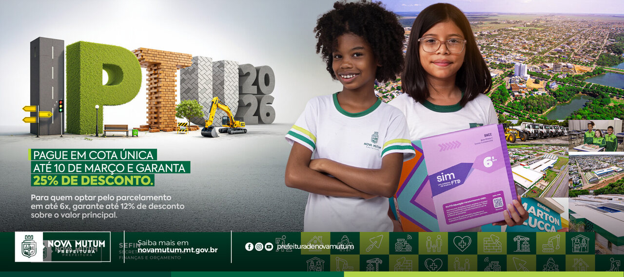 A Prefeitura de Nova Mutum lançou, nesta terça-feira (17.fev.2026), a campanha de arrecadação do Imposto Predial e Territorial Urbano (IPTU) referente ao exercício de 2026. O tributo incide sobre imóveis localizados em zonas urbanas, urbanizáveis ou de expansão urbana do município, abrangendo destinações residenciais, industriais ou comerciais. Isso inclui casas, edifícios, salas comerciais e terrenos vazios, tornando o pagamento obrigatório para todos os proprietários nessas áreas.