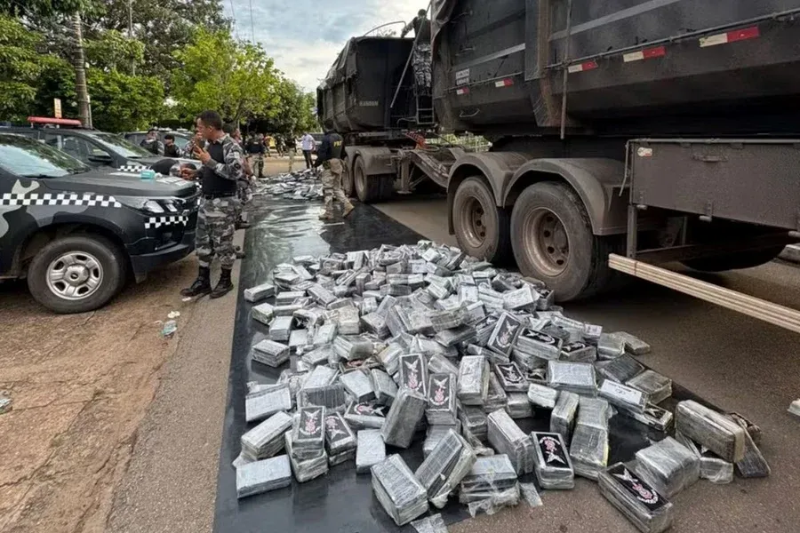 A droga estava escondida em um fundo falso de um caminhão que saiu de Mato Grossocom destino ao Porto de Barcarena, no nordeste paraense, de onde seria enviada ao exterior.