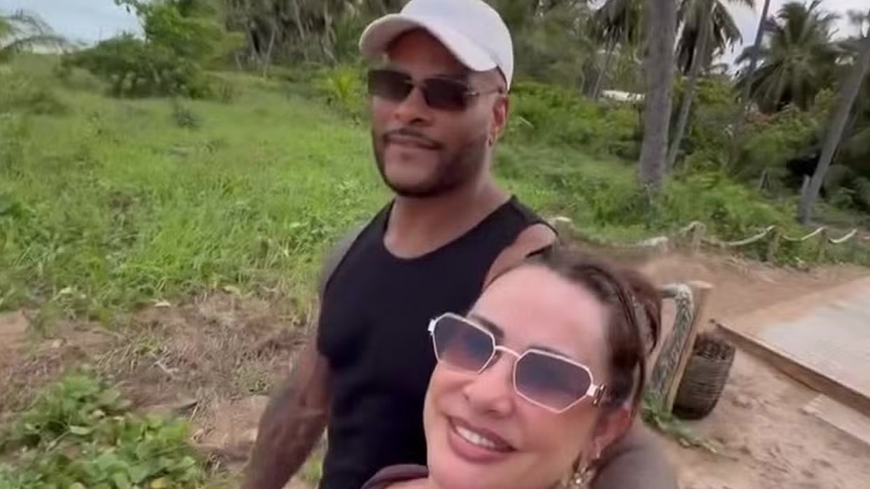 A dançarina e influenciadora Scheila Carvalho, de 52 anos, está aproveitando dias de descanso ao lado do marido, o cantor Tony Salles, de 45. O casal compartilhou, nesta terça-feira (17), registros da viagem em uma região litorânea, mas optou por manter o destino em segredo, revelando apenas que estão no Brasil.