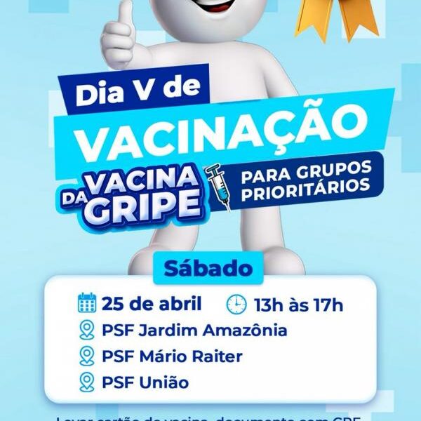 Além disso, serão ofertados todos os imunizantes do Calendário Nacional de Imunização Neste sábado, 25, é dia V de Vacinação. E para isso as Unidades Básicas...