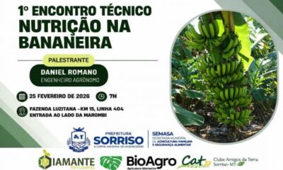A bananicultura será tema do 1º Encontro Técnico Nutrição na Bananeira que acontece em Sorriso no próximo dia 25 de fevereiro, a partir das 07h. O...
