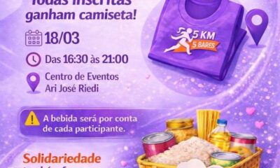 Inscritas para a “Corrida 5 Km 5 Bares” que será realizada nesse sábado, dia 21 de março, devem retirar as camisetas nesta quarta-feira, 18, e na...
