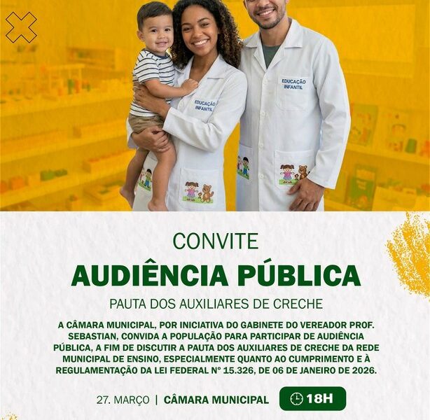 A Câmara Municipal realiza, nesta sexta-feira, 27 de março, a partir das 18h, no Plenário da Casa, audiência pública para discutir a regulamentação dos auxiliares de...