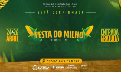 Evento acontece de 24 a 26 de abril, na Praça das Fontes, com atrações culturais e pratos à base de milho Sorriso, reconhecida por lei como...