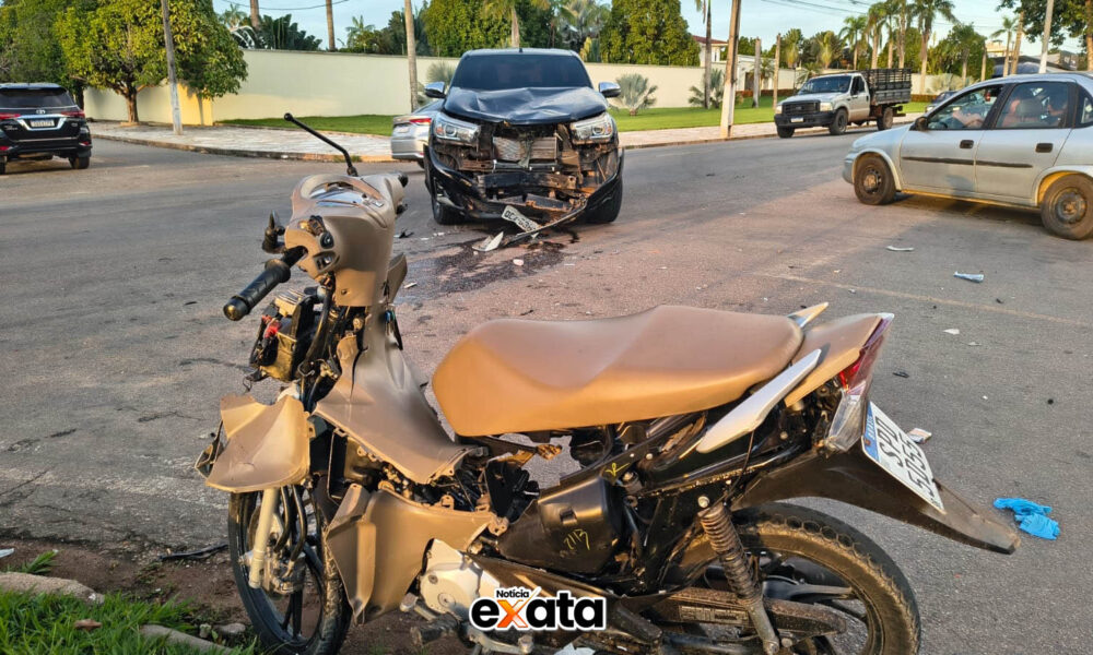 Um acidente de trânsito envolvendo uma caminhonete e uma motocicleta foi registrado no fim da tarde desta quarta-feira (08), na avenida do Setor C, na entrada...