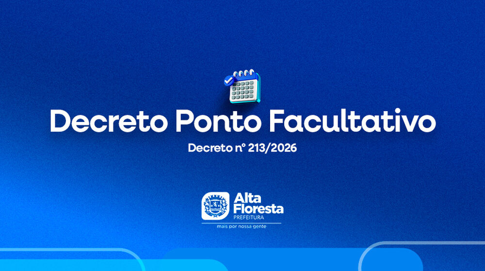 Prefeitura de Alta Floresta decreta ponto facultativo no dia 2 de abril A Prefeitura de Alta Floresta publicou o Decreto nº 213/2026, que estabelece ponto facultativo...