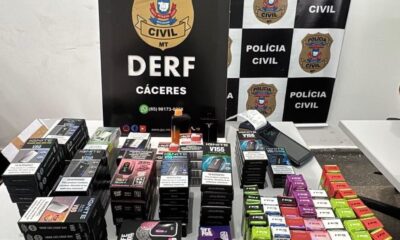 A Polícia Civil de Mato Grosso deteve dois jovens, ambos de 20 anos, por receptação de cigarros eletrônicos, em Cáceres, nesta segunda-feira (19). Os investigadores apuravam...