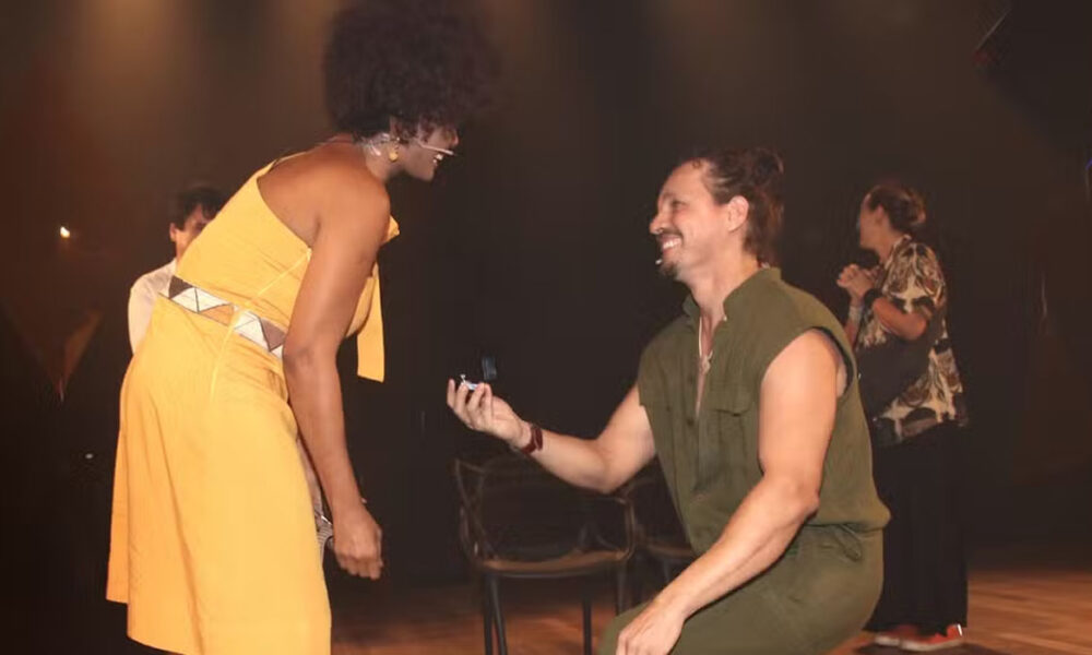 Isabel Fillardis é pedida em casamento no palco de teatro e se emociona: ‘Agora vai!’