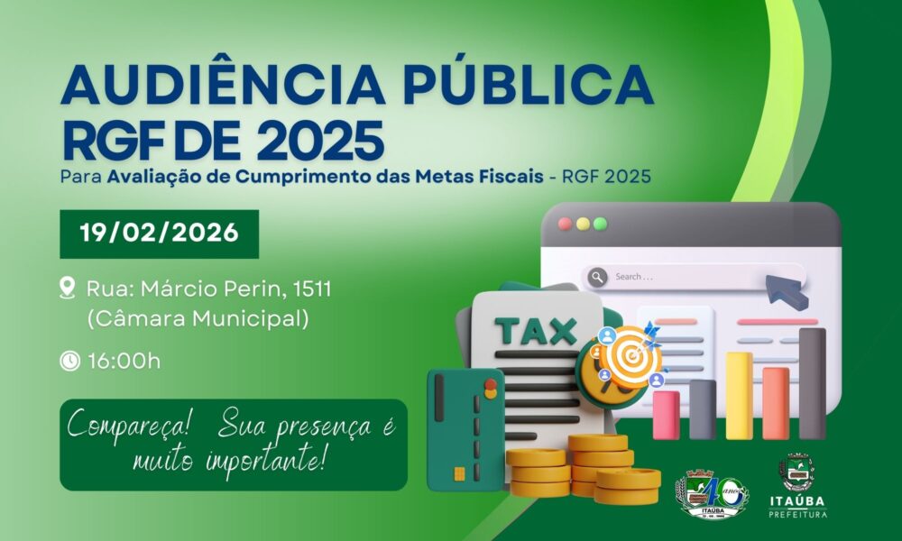 Prefeitura de Itaúba realiza Audiência Pública para apresentação do RGF do 3º Quadrimestre de 2025 A Prefeitura Municipal de Itaúba, Estado de Mato Grosso, comunica à...