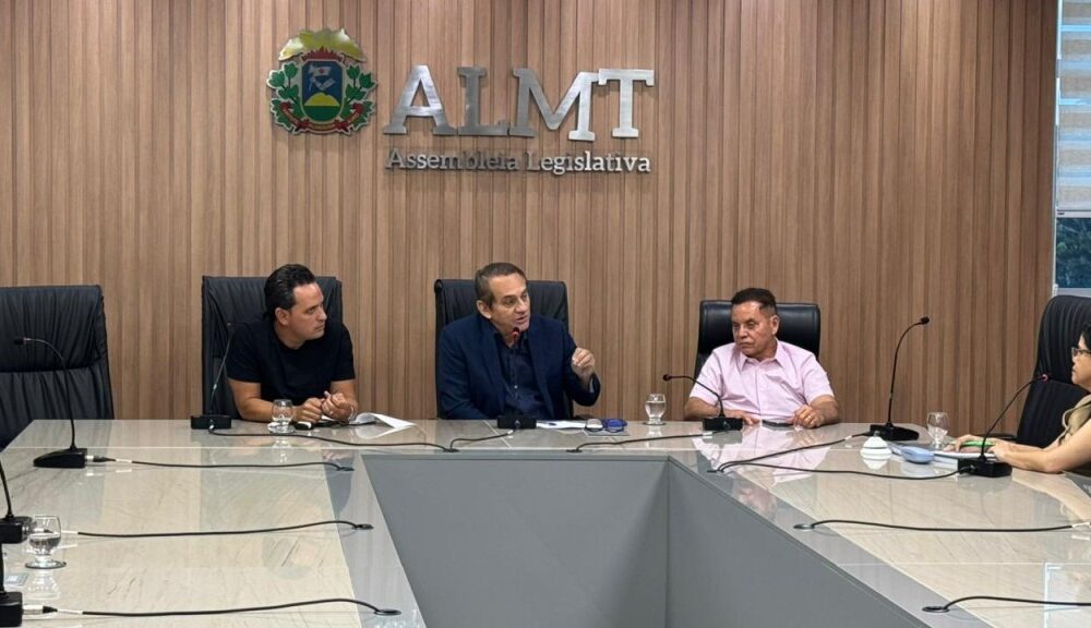 Os deputados estaduais Wilson Santos (PSD), Eduardo Botelho (União) e Diego Guimarães (Republicanos) se reuniram, nesta segunda-feira (19), no Colégio de Líderes da Assembleia Legislativa de...