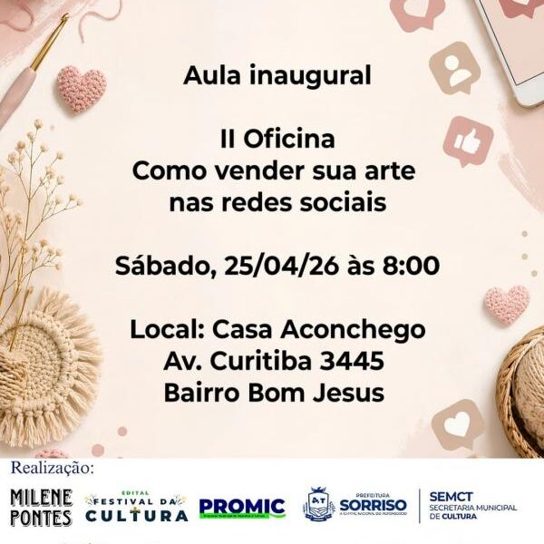Capacitação apresenta estratégias práticas para ampliar a divulgação e conquistar novos clientes no ambiente digital Artesãos e artesãs de Sorriso terão a oportunidade de participar da...