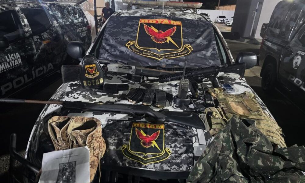 Policiais militares do Batalhão de Rondas Ostensivas Tático Móvel (Rotam) prenderam dois homens, de 24 e 25 anos, e apreenderam um fuzil e duas espingardas, na...