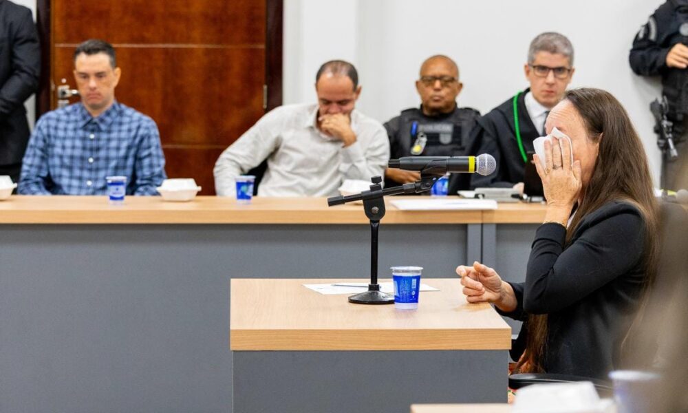 A sessão do Tribunal do Júri no plenário do Fórum da Comarca de Nova Mutum que julga Romero Xavier Mengarde e Rodrigo Xavier Mengarde, acusados pela morte da produtora rural Raquel...