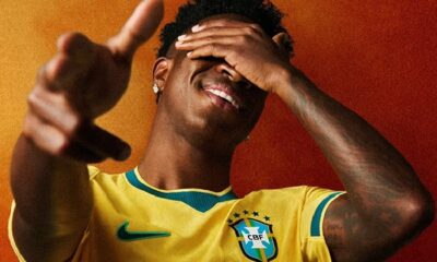 Em parceria com uma marca de roupas e calçados esportivos, a Confederação Brasileira de Futebol (CBF) apresentou neste sábado o novo uniforme principal da Seleção. Vinícius Júnior,...