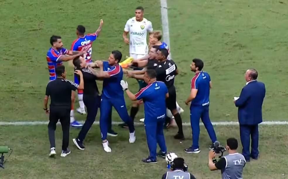 Thiago Carpini, por sua vez, também justificou a briga alegando que apenas se defendeu. “Em relação à confusão, eu não vou nem me alongar. Poucas vezes eu fui expulso, poucas vezes eu criei algum tipo de atrito. Se todos viram, pelas imagens, quem que vem em minha direção de uma maneira bem impetuosa, desrespeitosa e proferindo palavras desnecessárias para nossa equipe, para o Fortaleza e para mim? Eu me defendi e a imagem está bem clara”, afirmou.